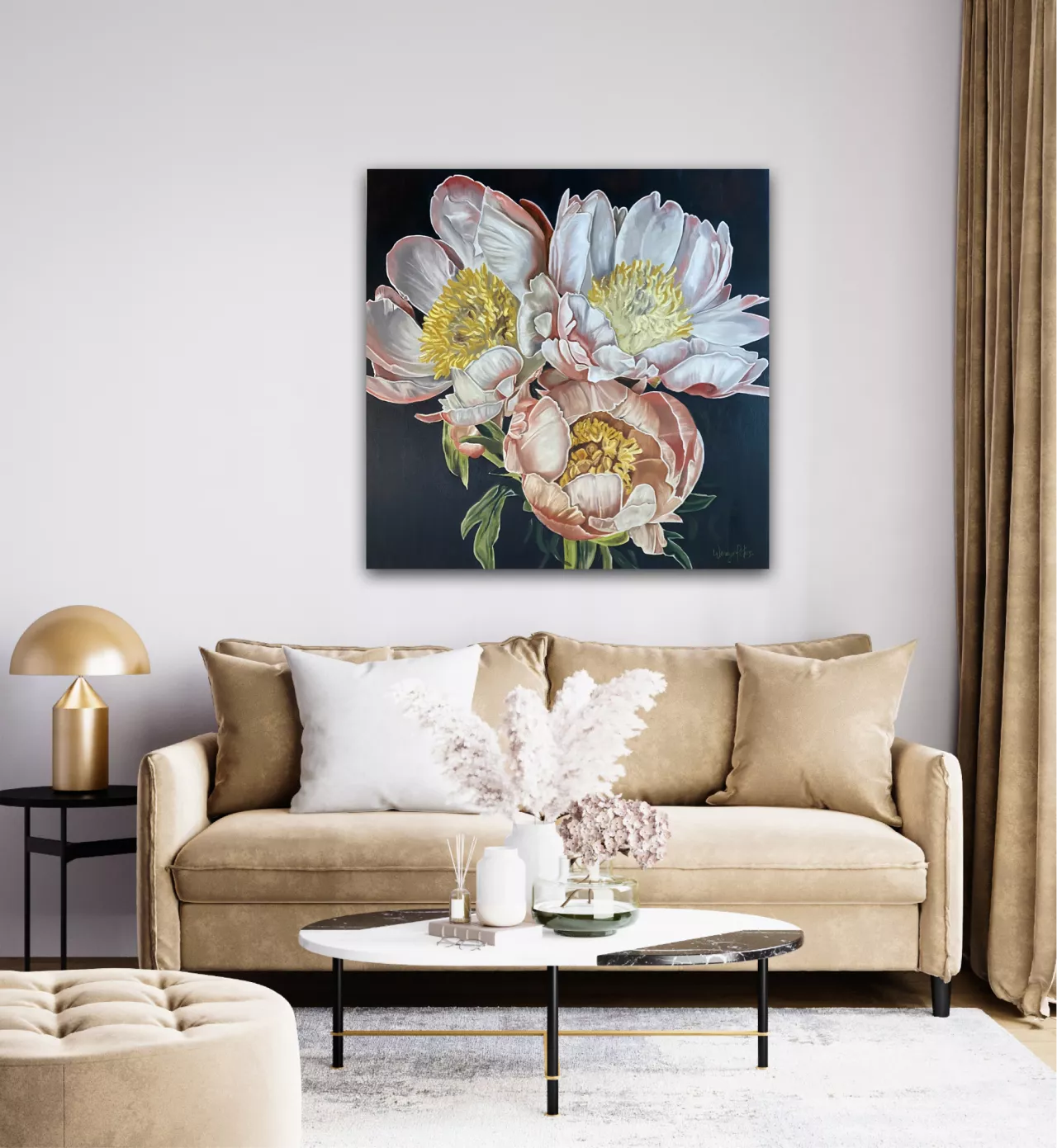I recently attended my nephew’s wedding in the UK and the inspiration behind these peony paintings was the beautiful bridal bouquet, and I can see why as in the language of flowers, the peony carries the symbolic meaning of romance, compassion, good luck, prosperity, a happy marriage, and even bashfulness. In their native China, peonies are often referred to as the “queen of flowers” . "A flower does not use words to announce its arrival to the world; it just blooms." . - Matshona Dhliwayo