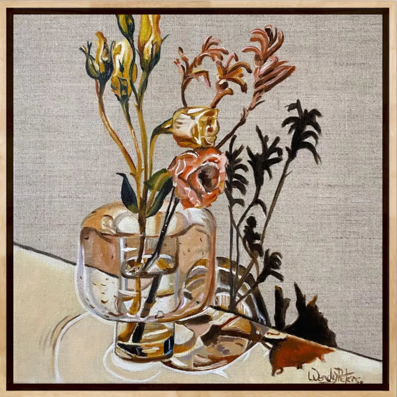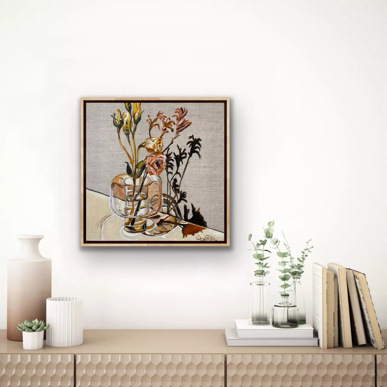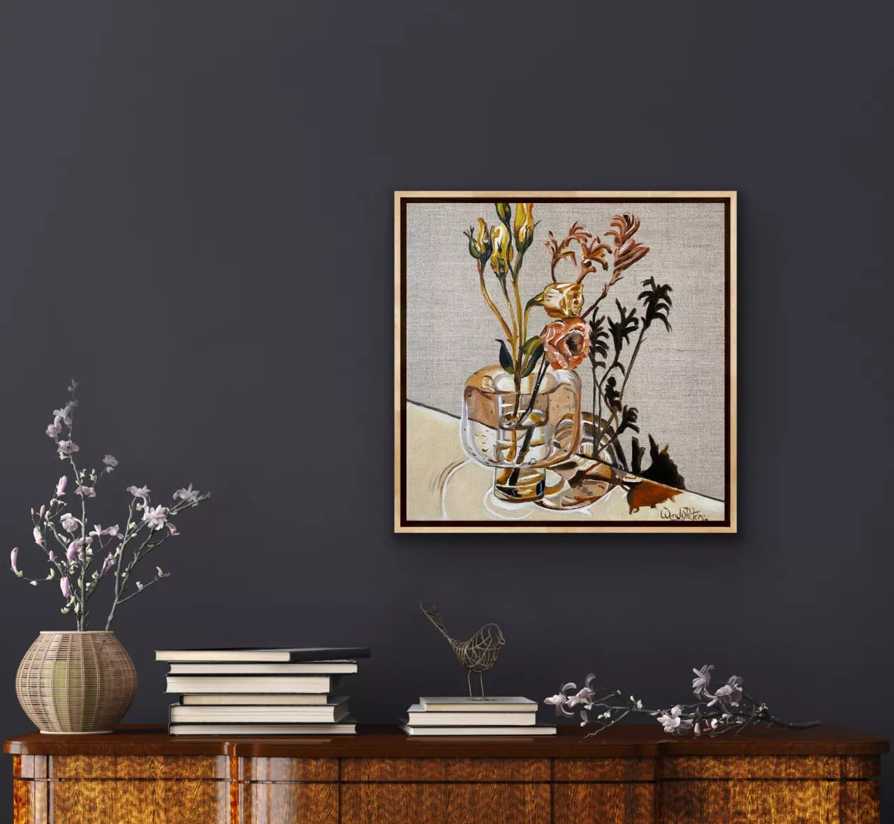 Capturing the beauty of an amber glass vase filled with a vibrant posy of flowers, bathed in the warm glow of sunlight. The delicate reflections cast upon the wall create a mesmerising interplay of light and shadow, enhancing the overall sense of tranquillity and beauty. Looks fabulous paired with Magnolia Reflections.Framed in a high quality raw oak float frame. Size state includes frame.Supplied with a Certificate of Authenticity.Thank you for viewing Reflected Beauty I hope you love it.