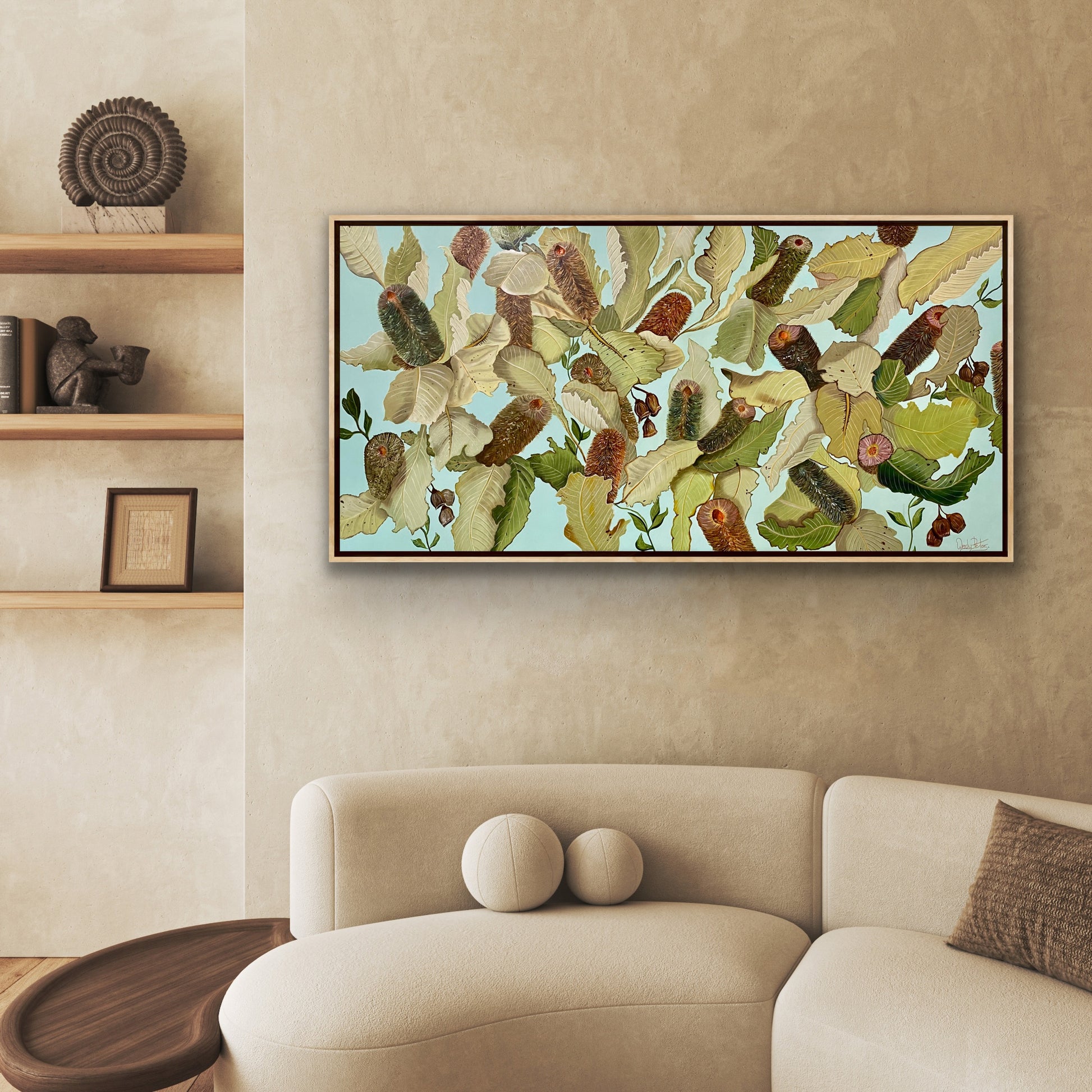 If you appreciate unique art that celebrates the beauty of the natural world and makes a bold yet serene statement, this Banksia Robur painting could be perfect for you.