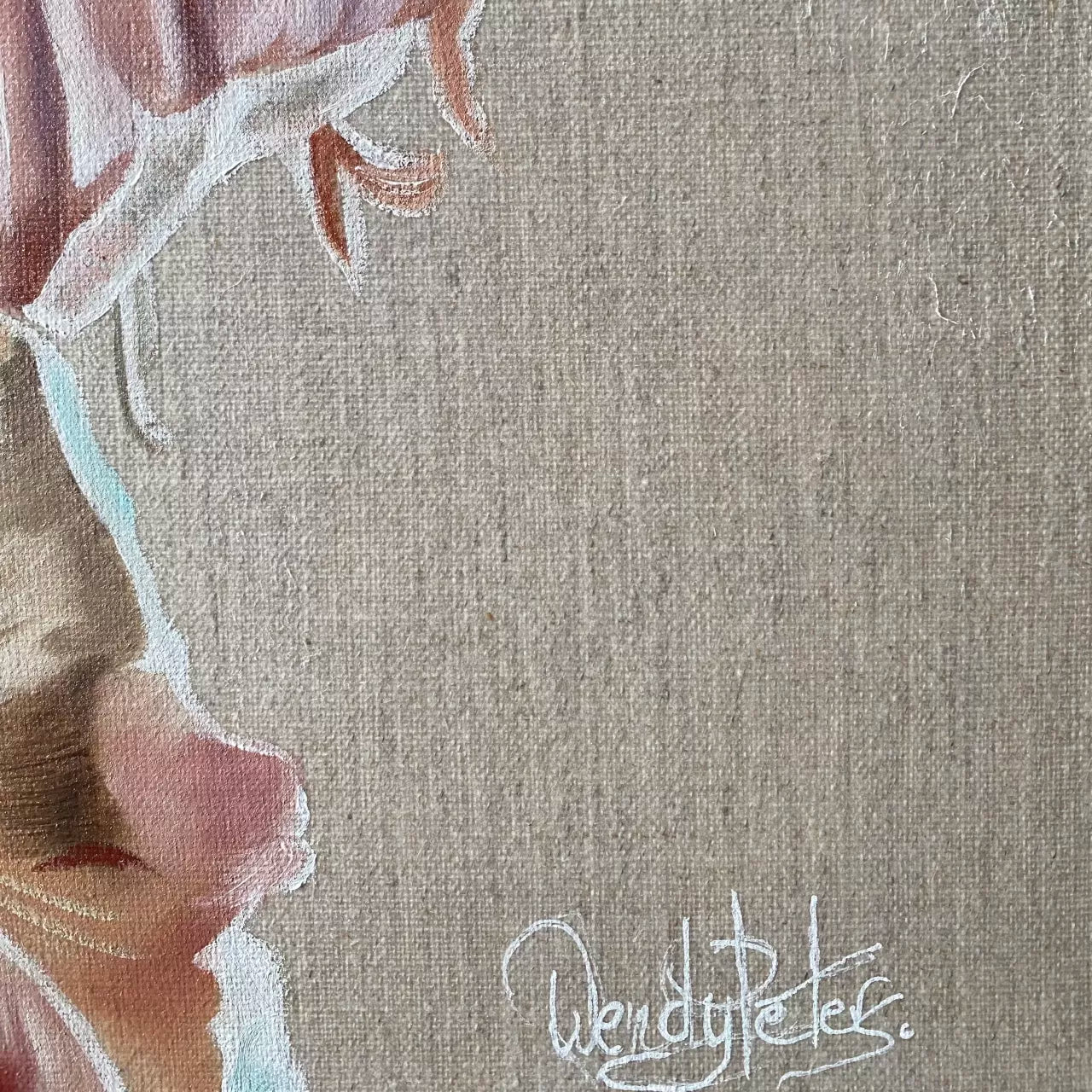 With a simple background of natural linen, these amazing tulips are able to take centre stage, a mix of beautiful shades to create a magical effect. Velvety purples, soft pinks, icy greens and turquoise, add a playful energy, whilst the soft dusty pinks add a touch of elegance. Tulips have historically symbolized perfect love and passion. This painting for me represents a feeling of optimism and a bright future.This painting would work equally well in a contemporary or classic setting.Comes with a Certificate of Authenticity.This painting is on stretched artist quality canvas with internal wooden frame. It would also look fabulous in a timber or black floating frame.All of Wendy’s original artworks are signed on the front and signed and named on the back.